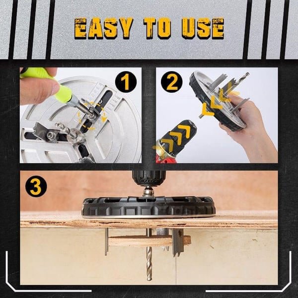 This woodworking hole driller with adjustable multi diameters from 45mm to 130mm, makes it possible to cut holes of different diameters with just one tool, saving money and space.