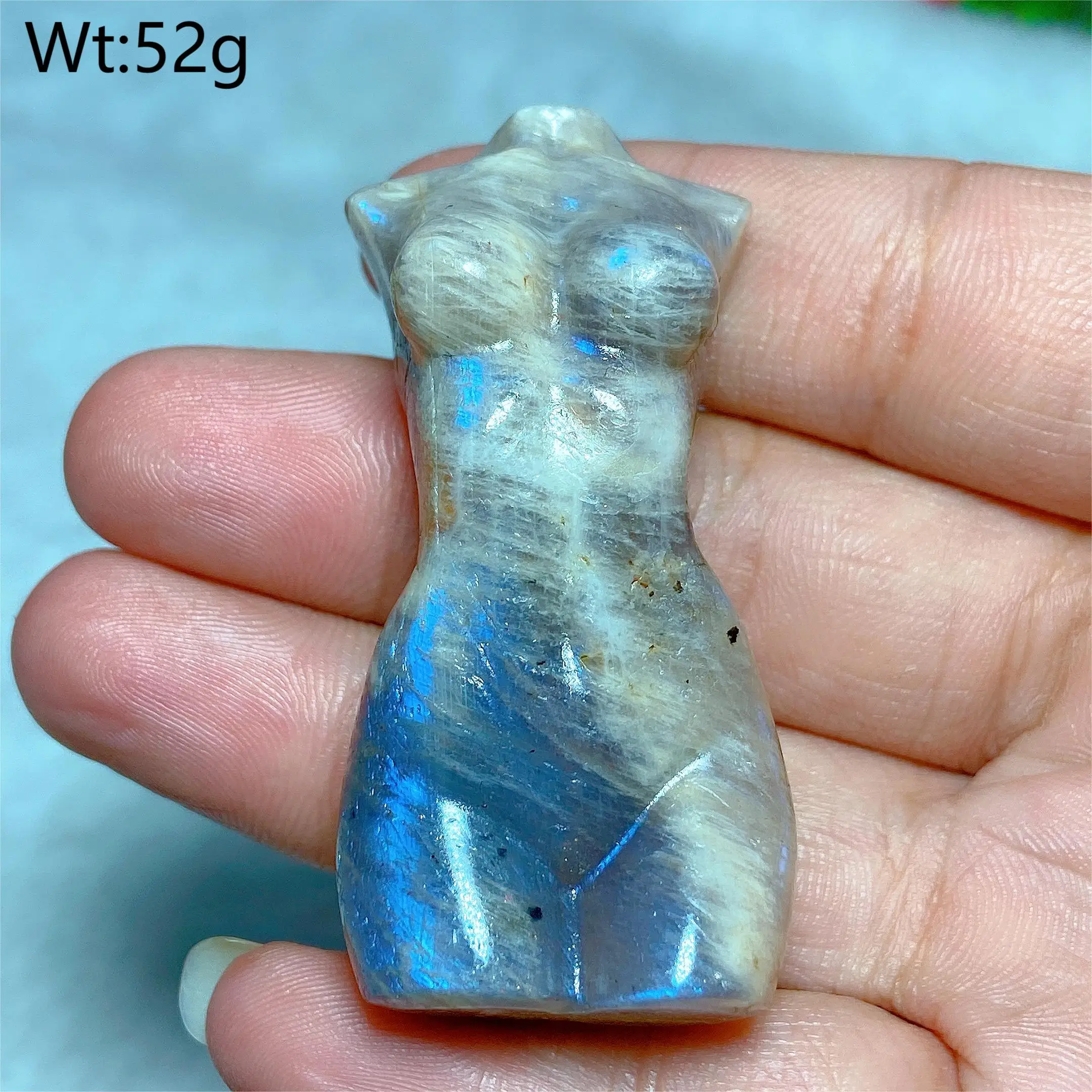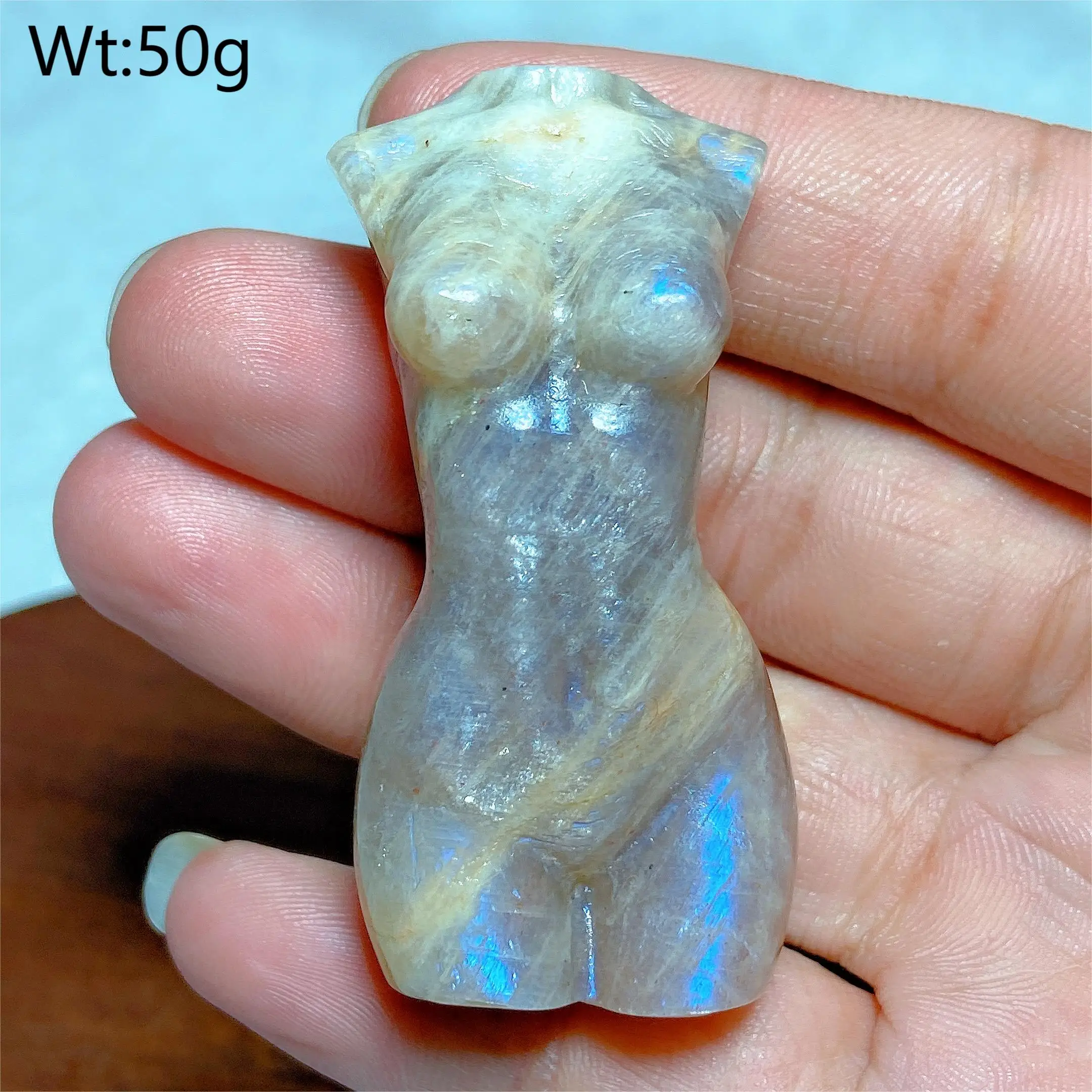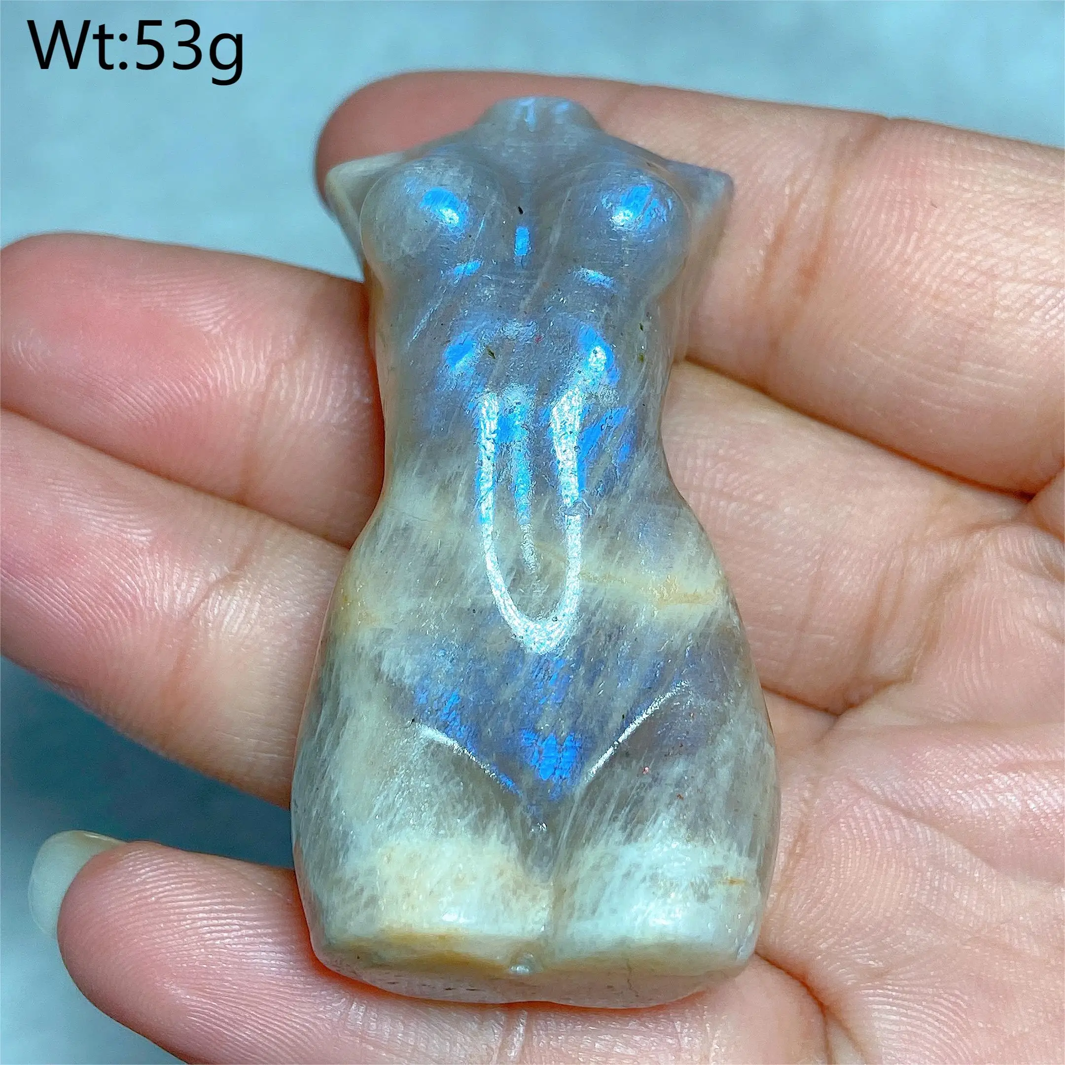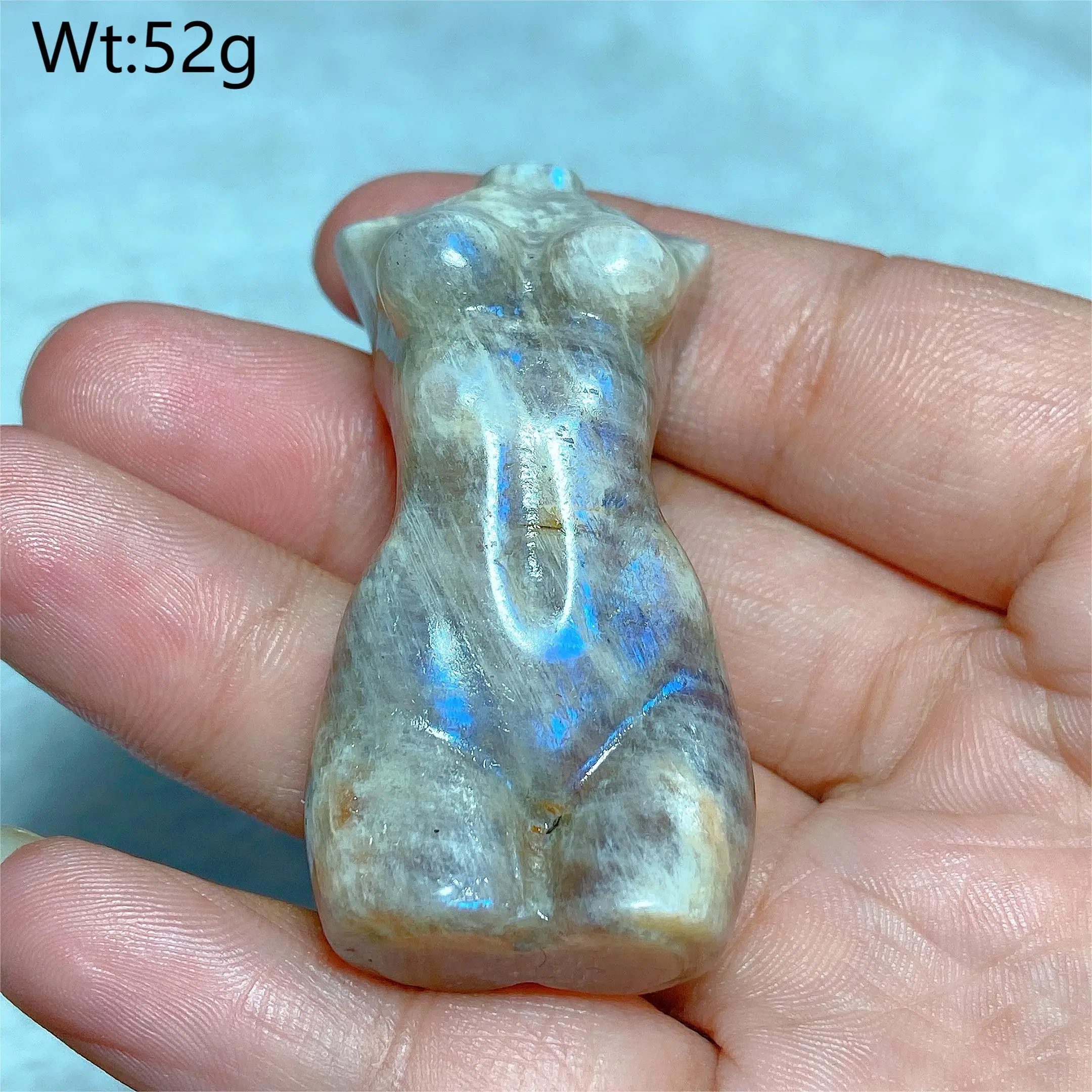 High Quality Natural Crystals Sunstone With Moonstone Carving Goddess Woman Body Blue Flashy Home Decoration Mineral Energy Gift