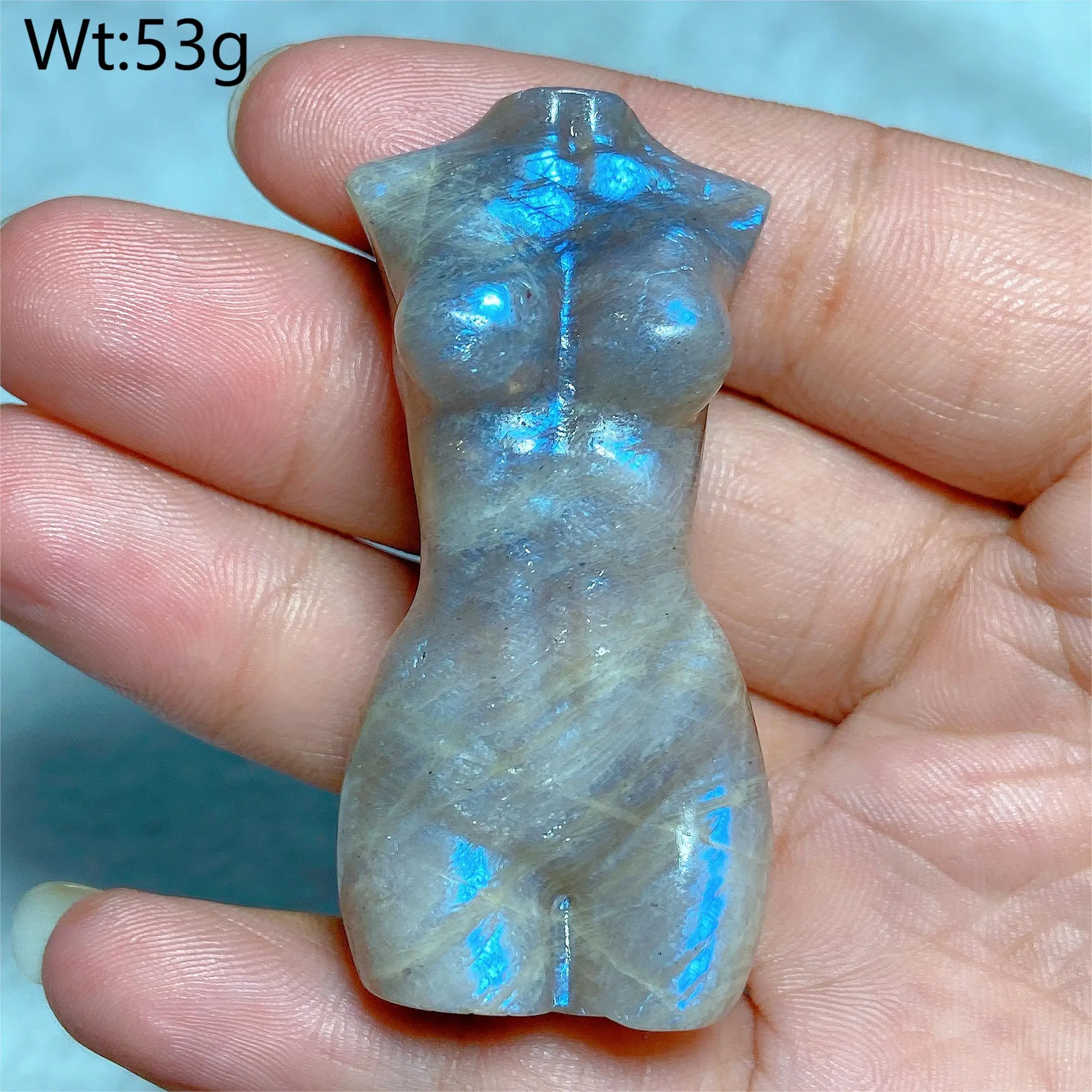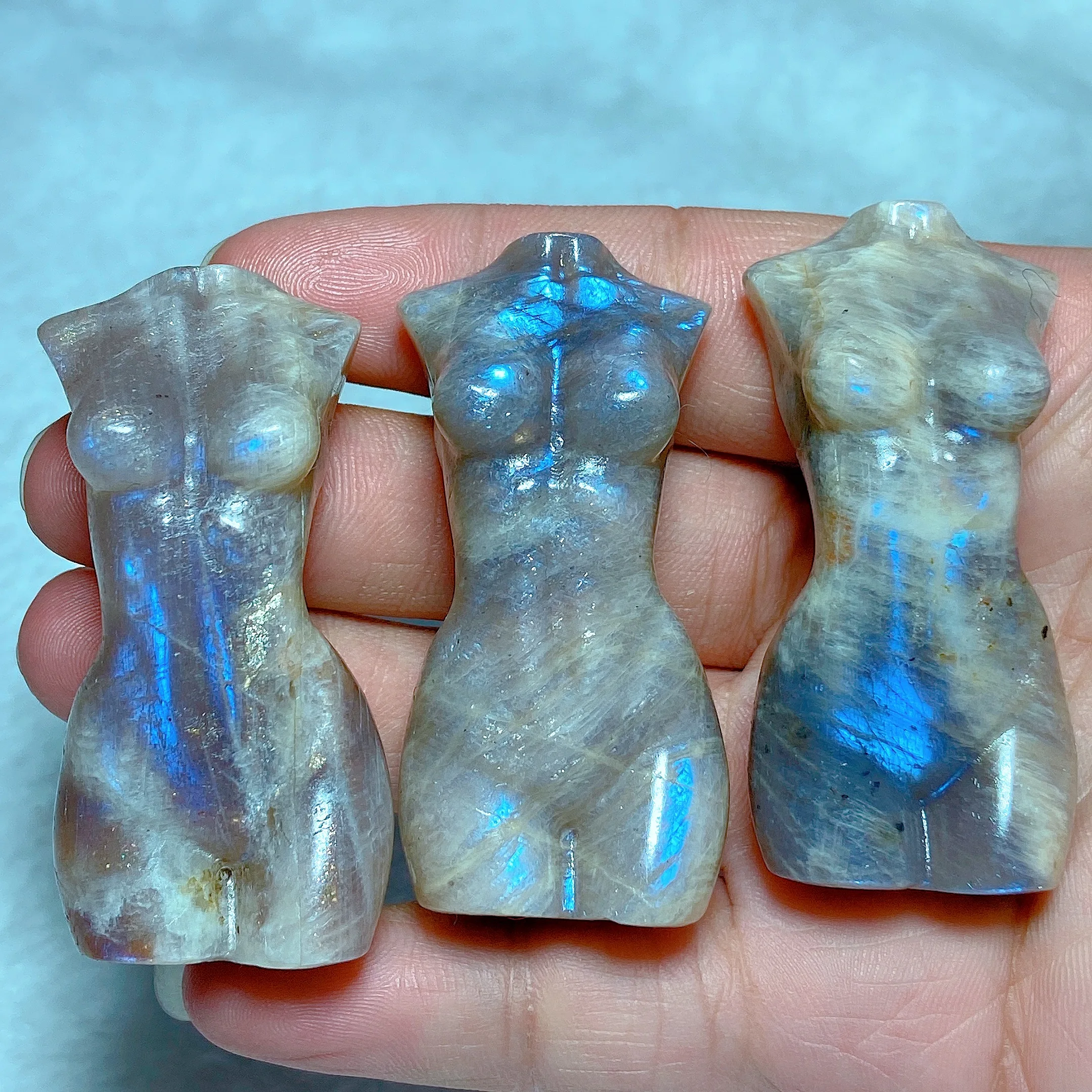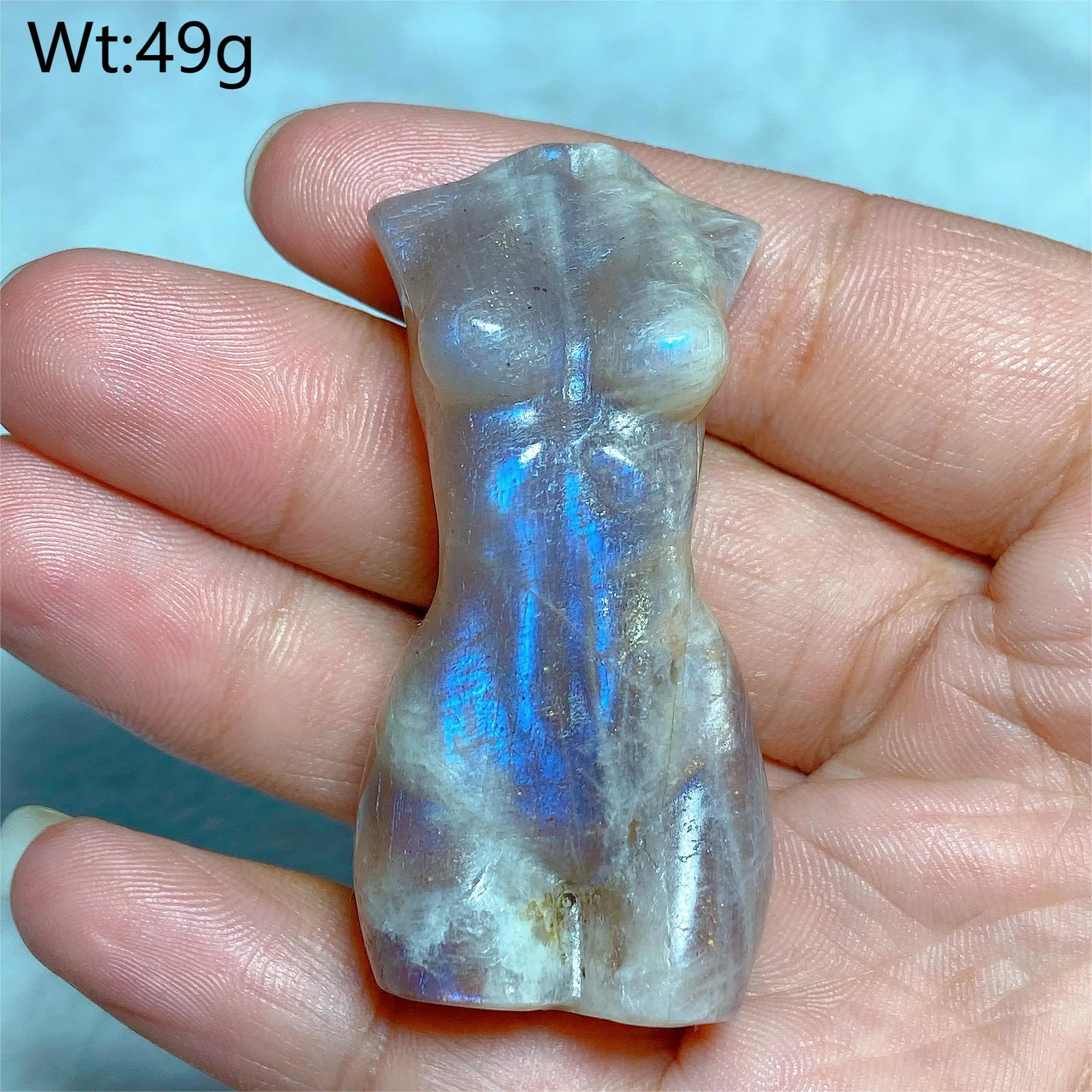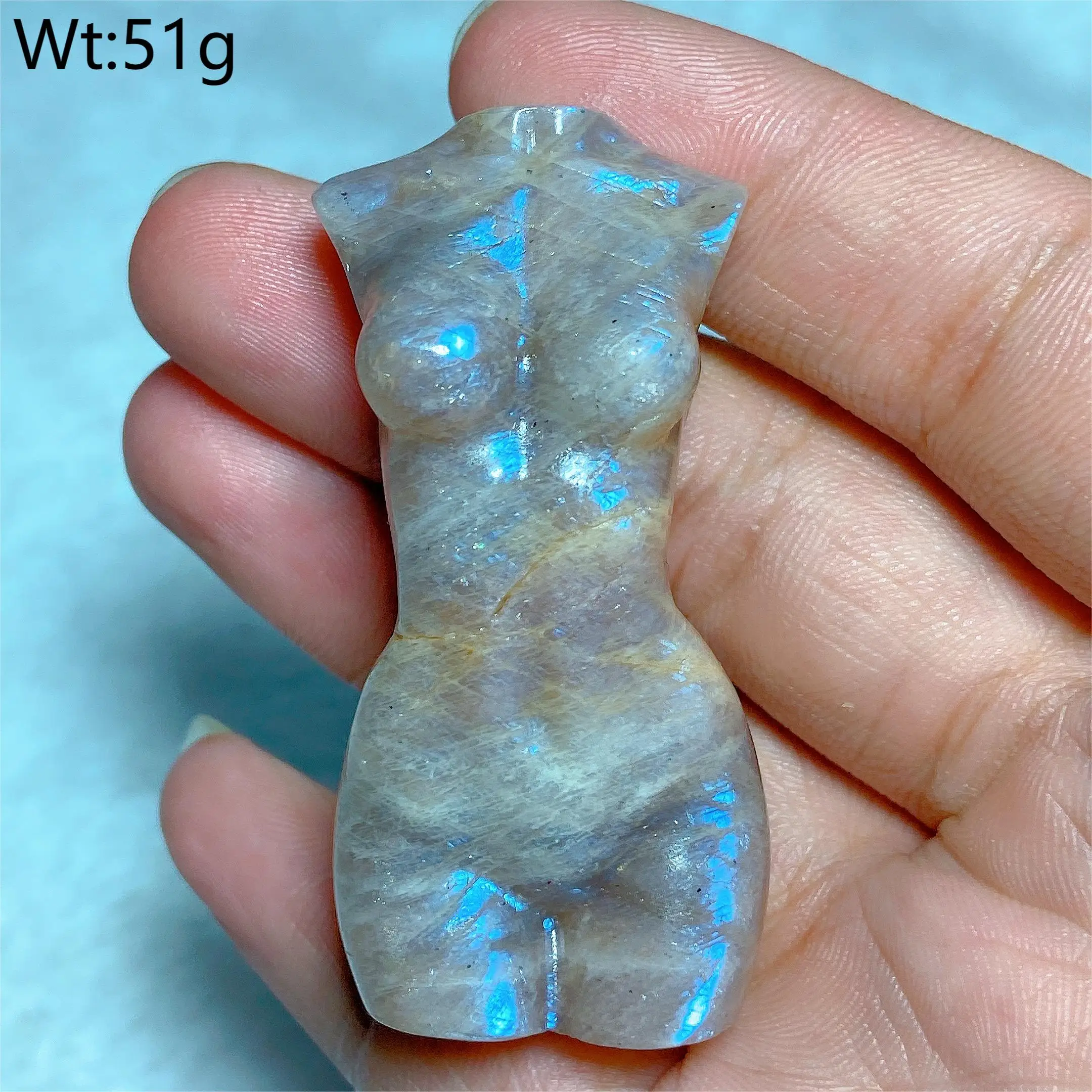 High Quality Natural Crystals Sunstone With Moonstone Carving Goddess Woman Body Blue Flashy Home Decoration Mineral Energy Gift