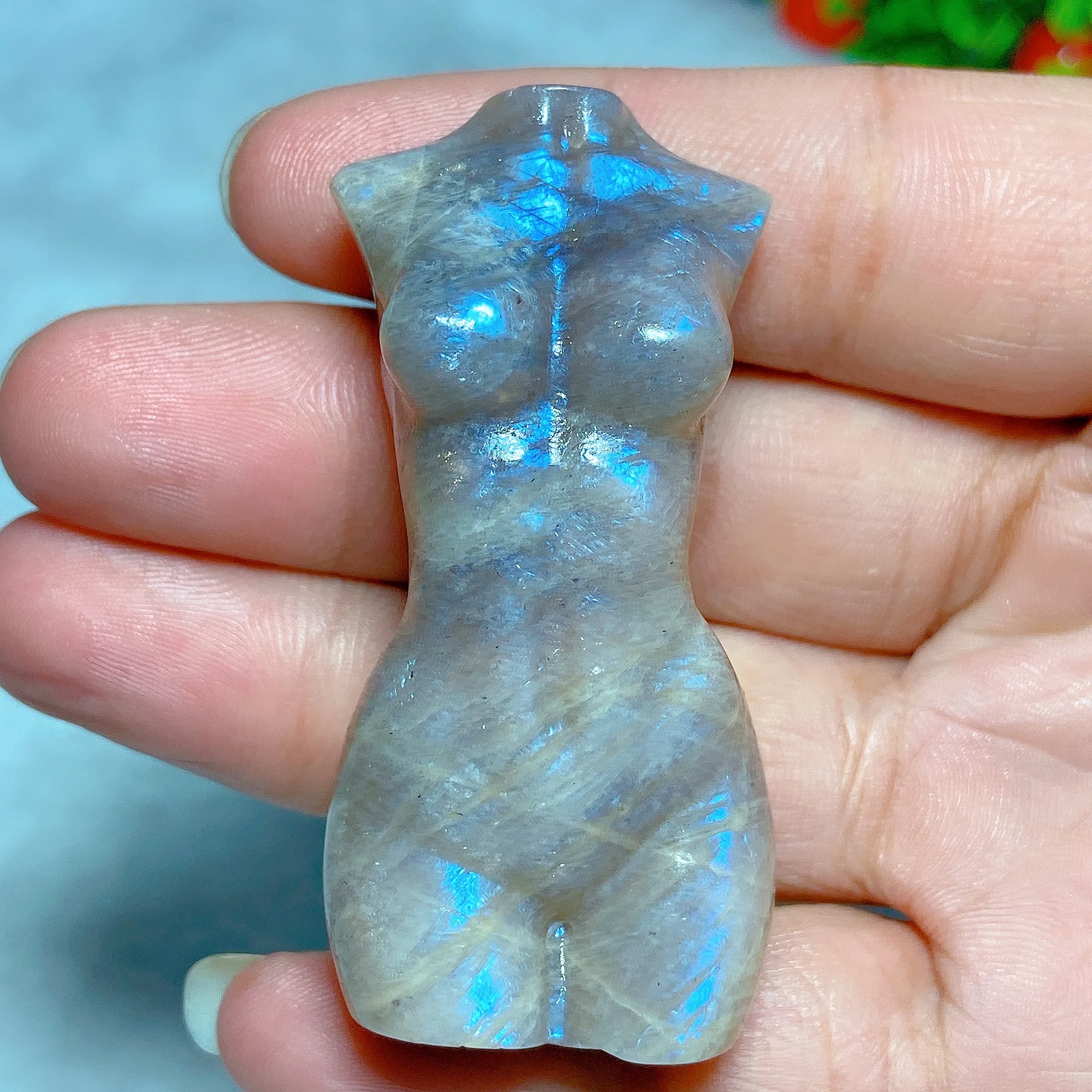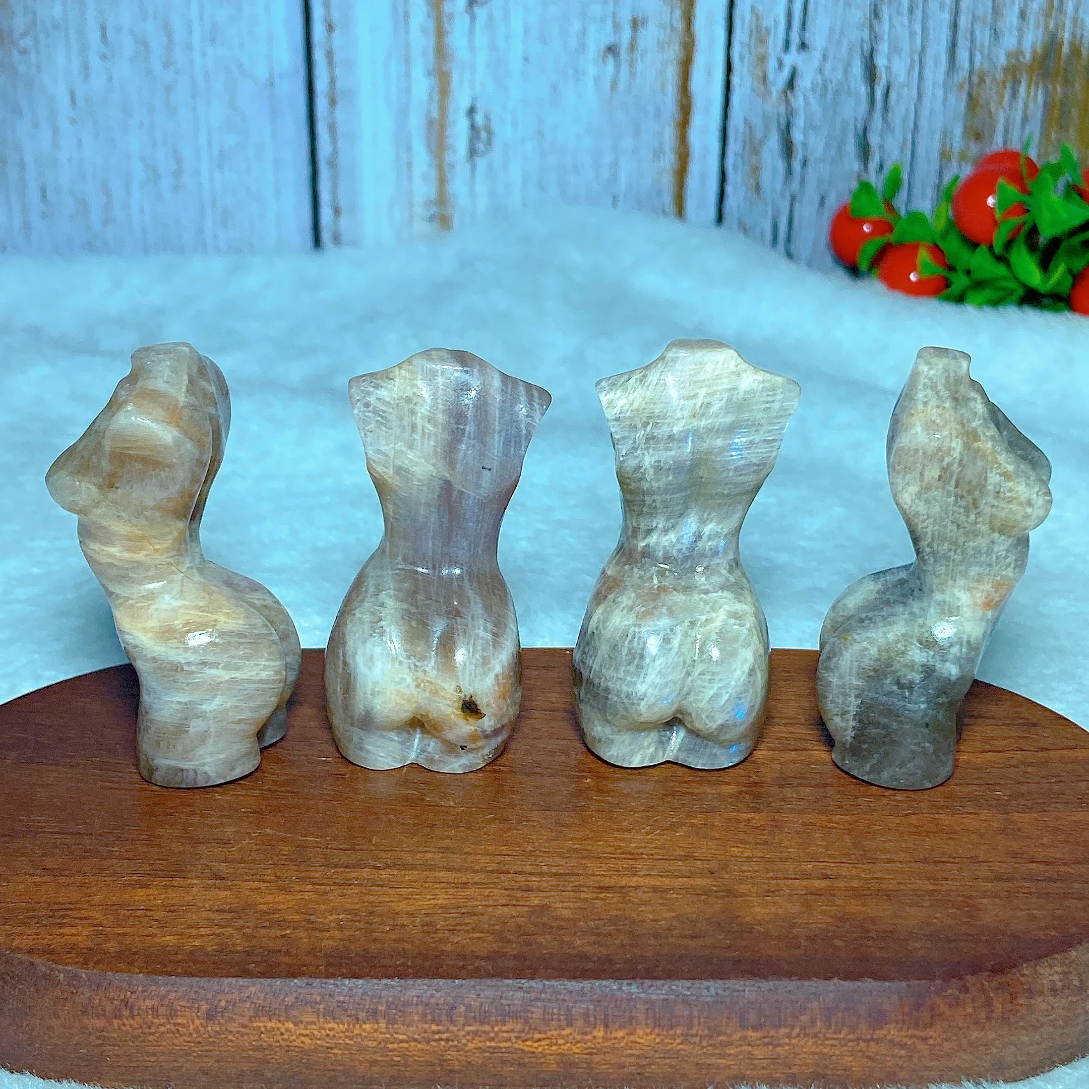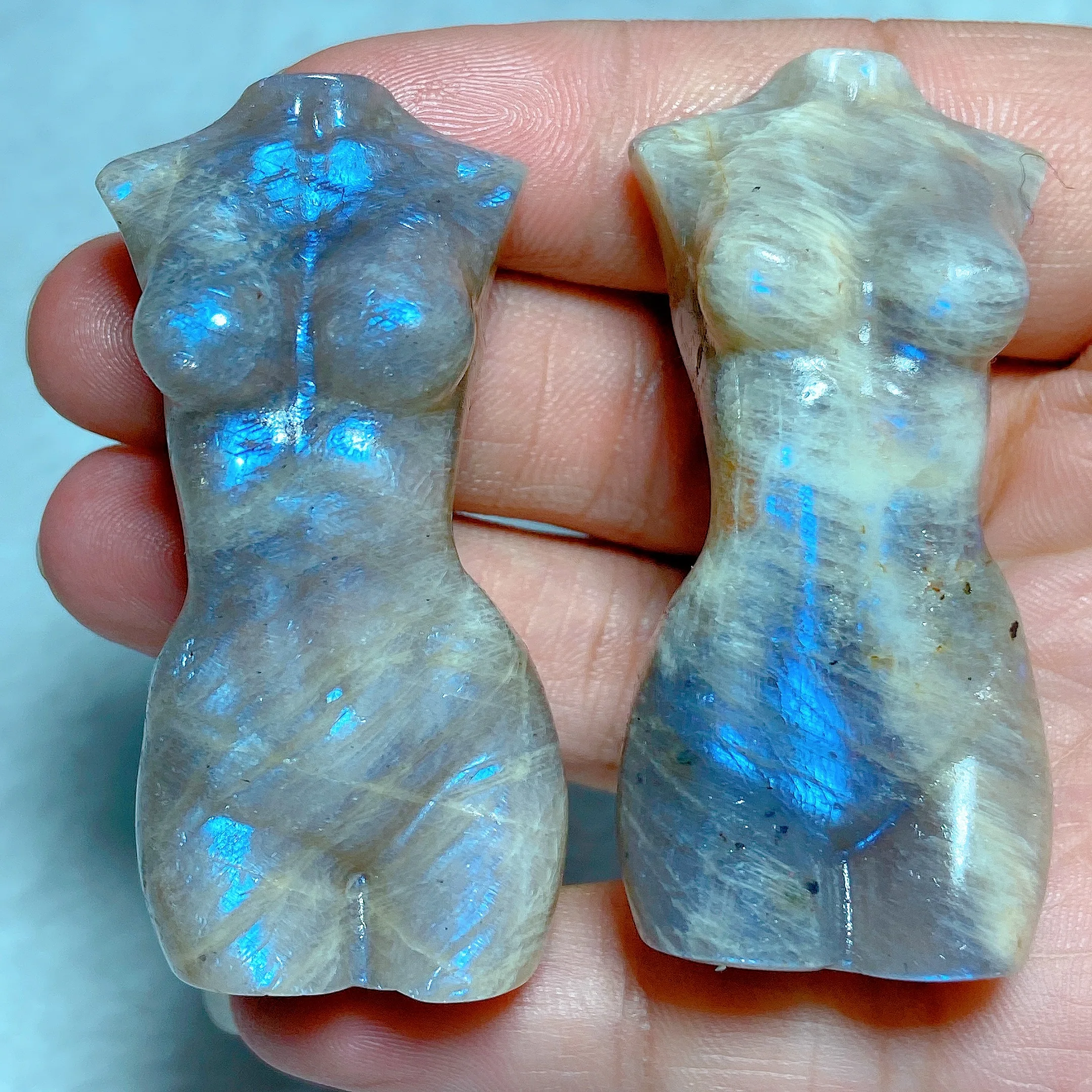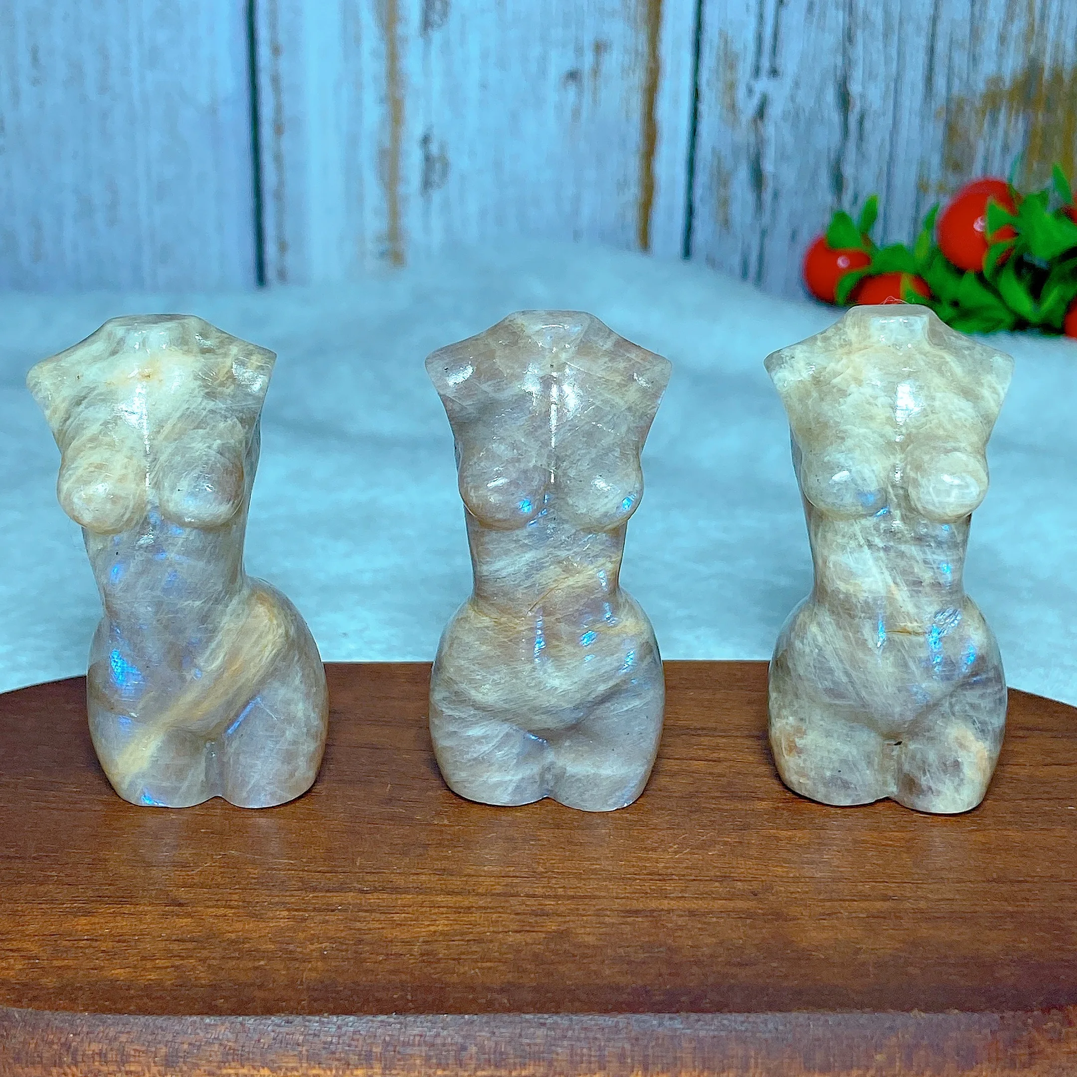 High Quality Natural Crystals Sunstone With Moonstone Carving Goddess Woman Body Blue Flashy Home Decoration Mineral Energy Gift