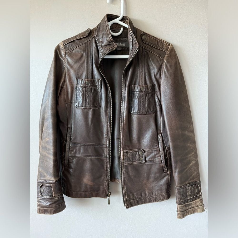 Kenneth Cole Reaction Women's Vintage Brown Leather Jacket