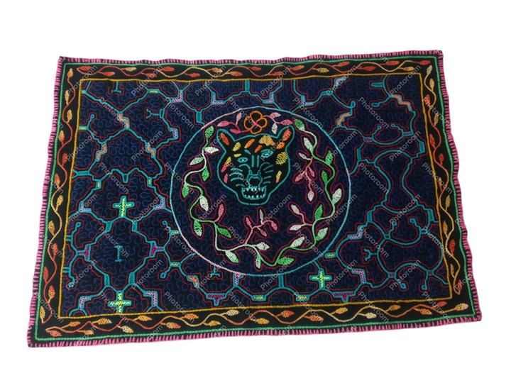 Hand Embroidered Shipibo Blanket – Puma Design and Amazonian Patterns