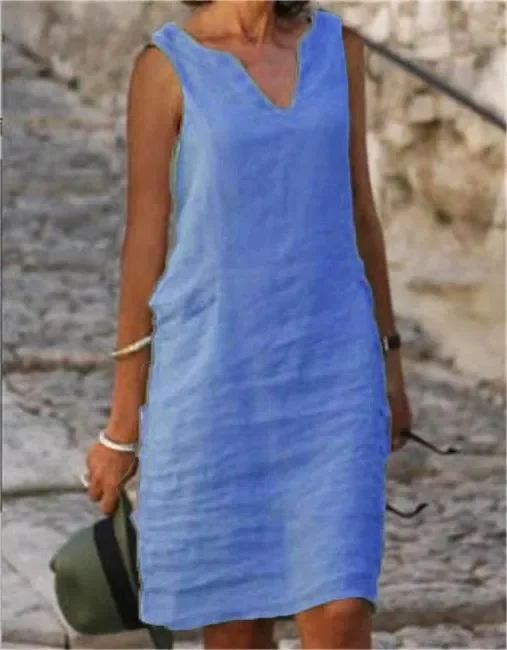 • Casual Linen Material : Crafted from high-quality linen, this dress provides comfort and breathability throughout the day.