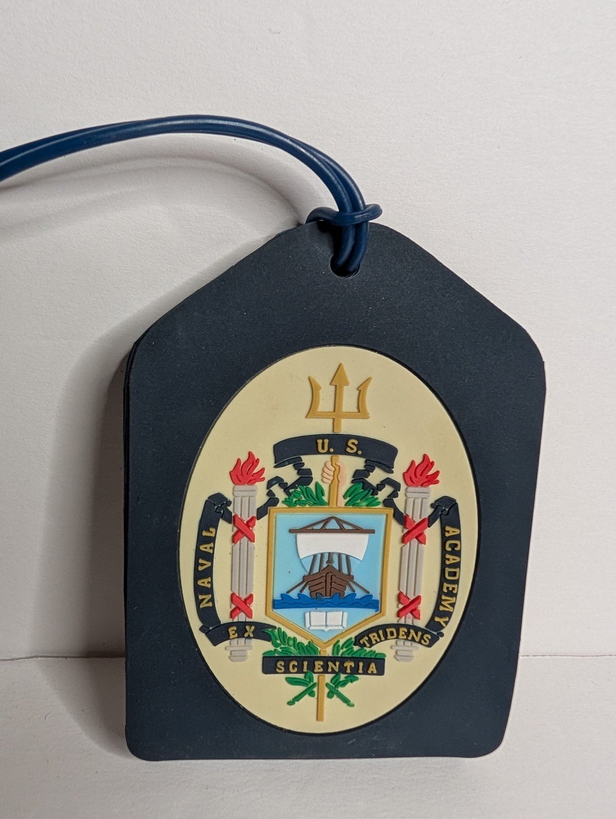 The U.S. Naval Academy Scientia Tridens Travel Tag is a unique item that pays tribute to the prestige and tradition of the U.S. Naval Academy. This collectible item serves as a memento of the historic military academy, making it a valuable piece for collectors and enthusiasts interested in military history and education. The travel tag likely features distinctive designs and symbols associated with the academy, making it a special item to commemorate the academy's legacy and contributions to the military.