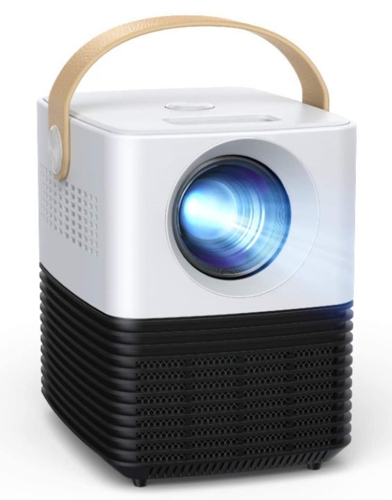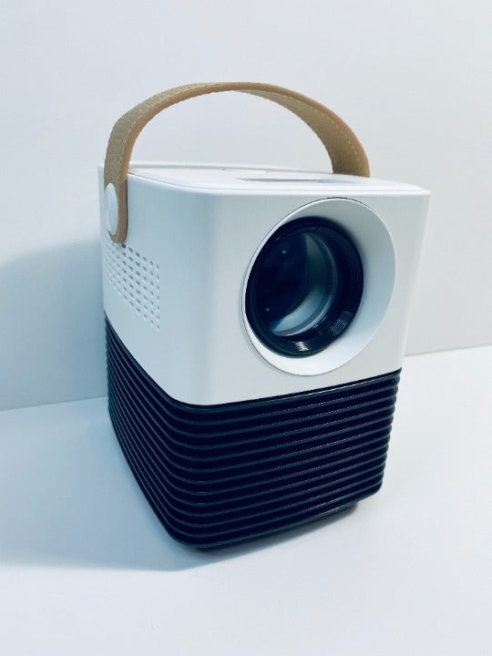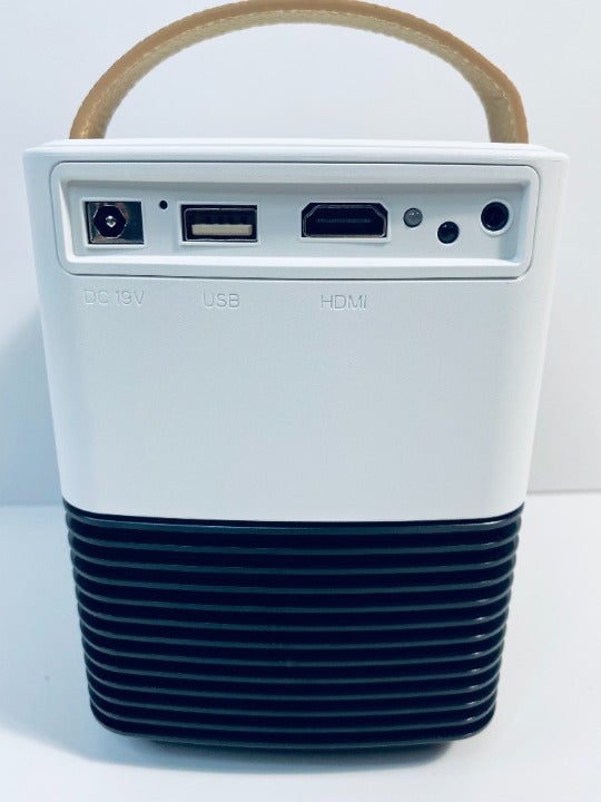 Support 1080P & Portable Design: Native 854*480P resolution, Supports 1080P full HD video. The mini projector is 7.8*7.5*6 inch, 2lb weight. The unique leather handle design is convenient to carry.