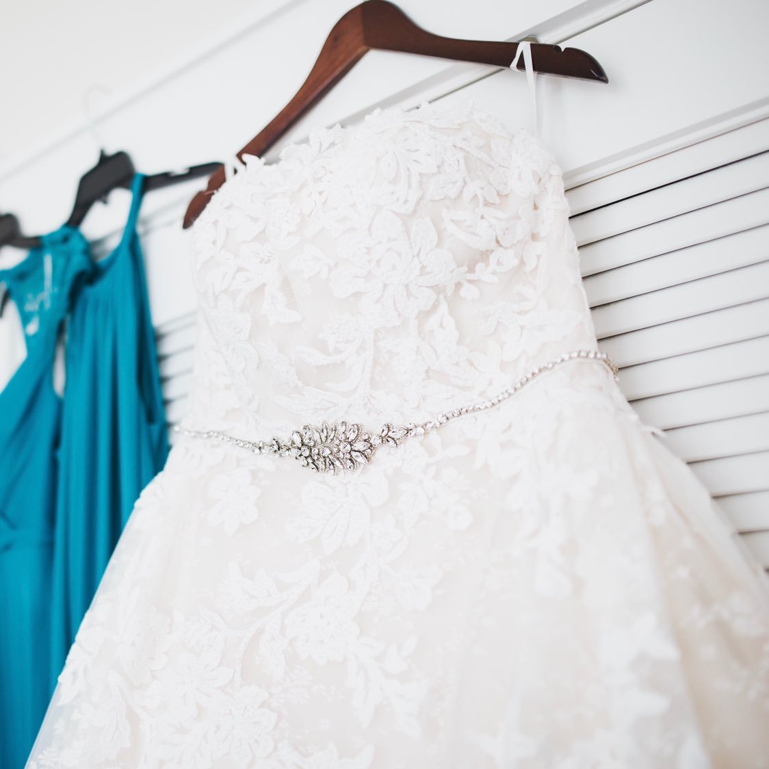 No permanent alterations made, all can be pulled out by a seamstress and altered to fit you. Belt sewn on and comes with the dress, but it can be removed. Bra cups also sewn in but can be removed. French bustle added.