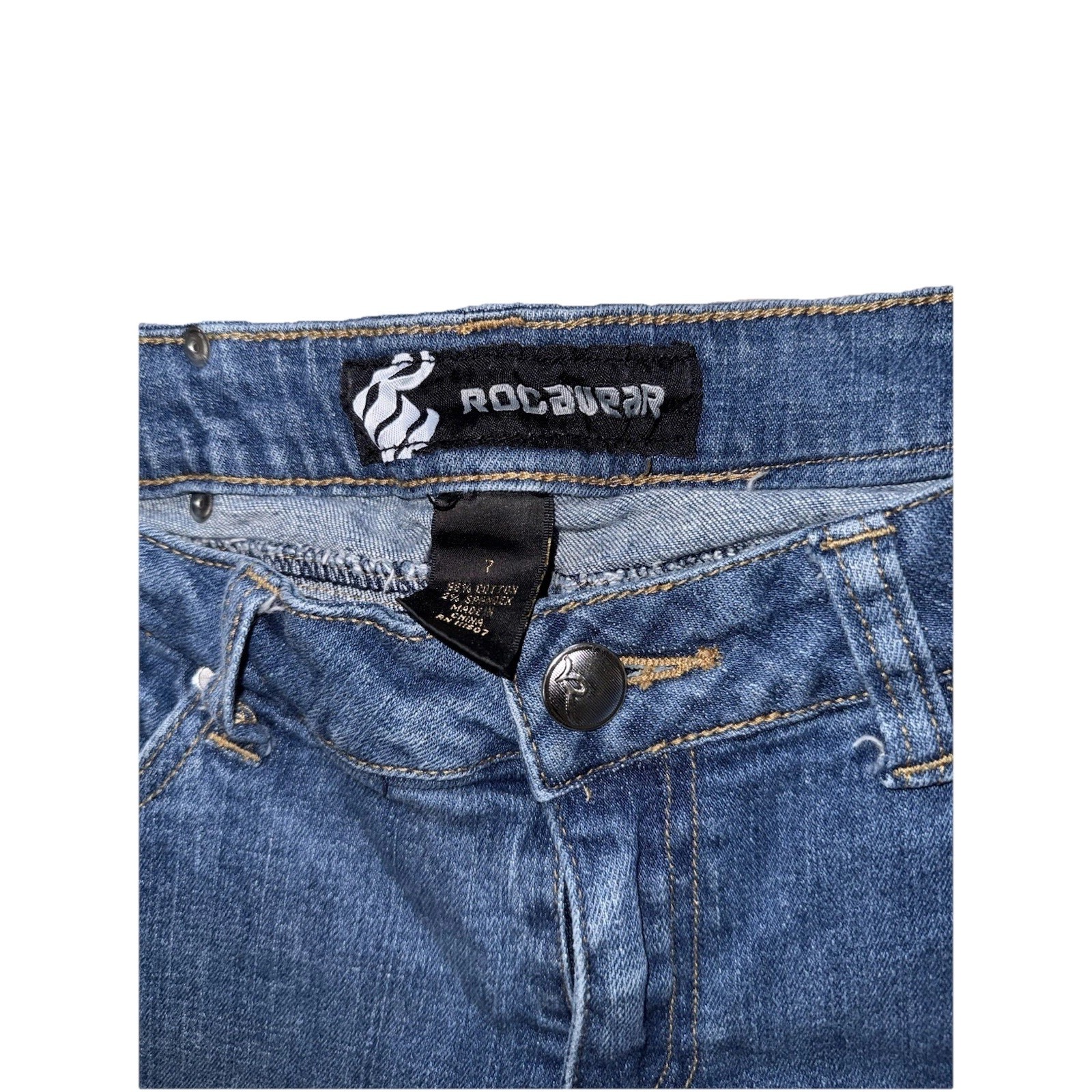 Rocawear Y2K Low Rise Rose Floral Embroidered Flared Bootcut Blue Jeans Size 7