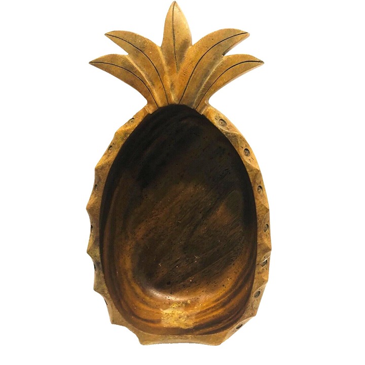 VTG Pineapple Monkey Pod Carved Wood Salad Bowl Set MCM Signed 9 PC USA