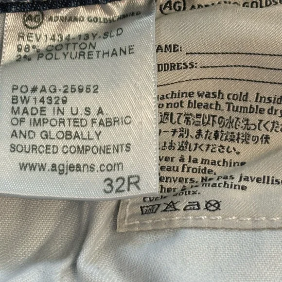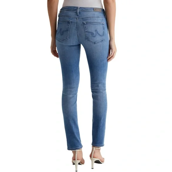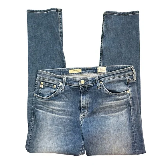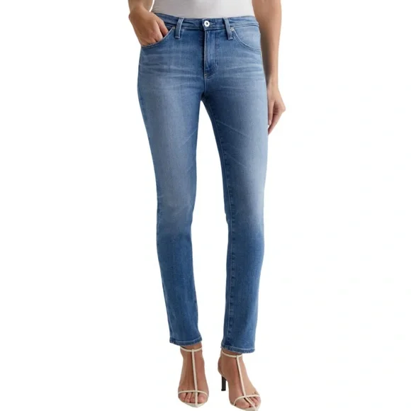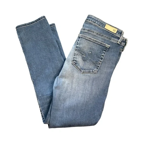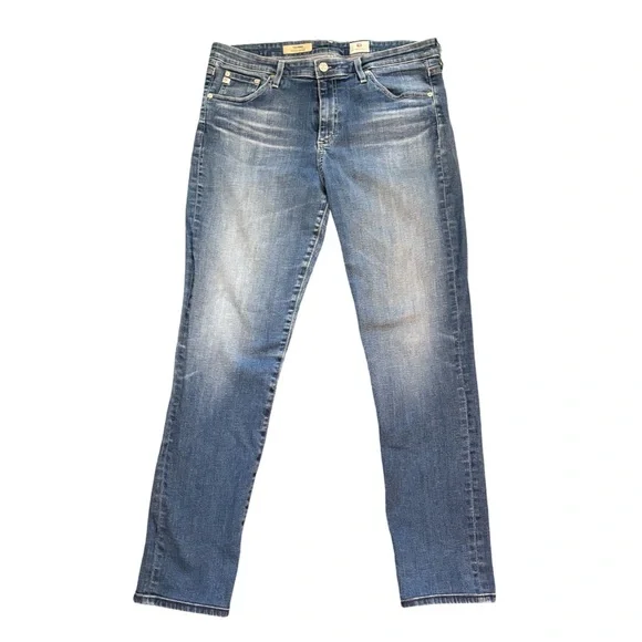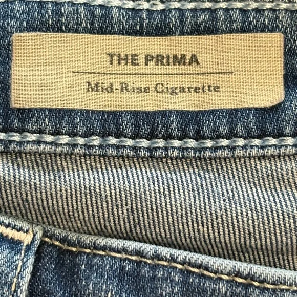 AG Adriano Goldschmied The Prima Mid Rise Cigarette Blue Denim Jean in Size 32These jeans are in excellent pre-owned condition.Details:• Premium denim• Fading and whiskering, embroidered back pockets• Mid rise slim fit• Zip fly and button closure• 5-pocket styling and belt loops• 98% cotton, 2% polyurethaneMeasurements (approximate):• Waist: 32"• Front Rise: 10"• Inseam: 28"• Leg opening around: 13"All items:• come from a clean, smoke-free environment • will be shipped out same-day or next-day • are either new with tags or, if pre-owned, clean & sanitized Thanks for visiting my closet!Tags: mid rise, slim fit, cigarette jean, blue jean, blue denim, weekend, date, night, casual, comfortable