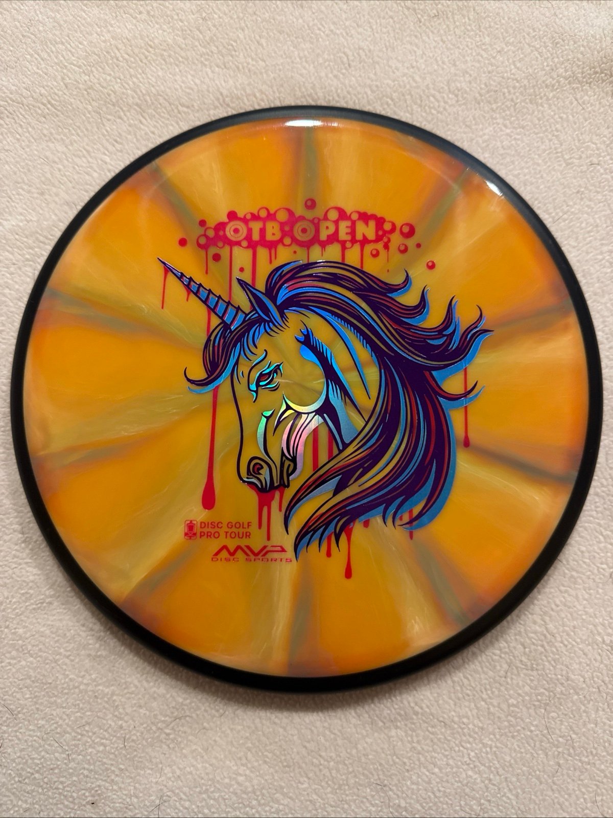 The MVP 2023 OTB Cosmic Electron Soft Matrix disc is a rare and out of print (OOP) midrange disc specifically designed for disc golf enthusiasts. With a speed rating of 5, fade rating of 2, and glide rating of 4, this disc offers a balanced performance for intermediate-level players. The premium plastic construction and unique multi-color design make it a standout choice for collectors and players looking for a high-quality disc with a weight of 176g. The right turn (-1) rating indicates that this disc is suitable for players who prefer a stable and predictable flight path.
