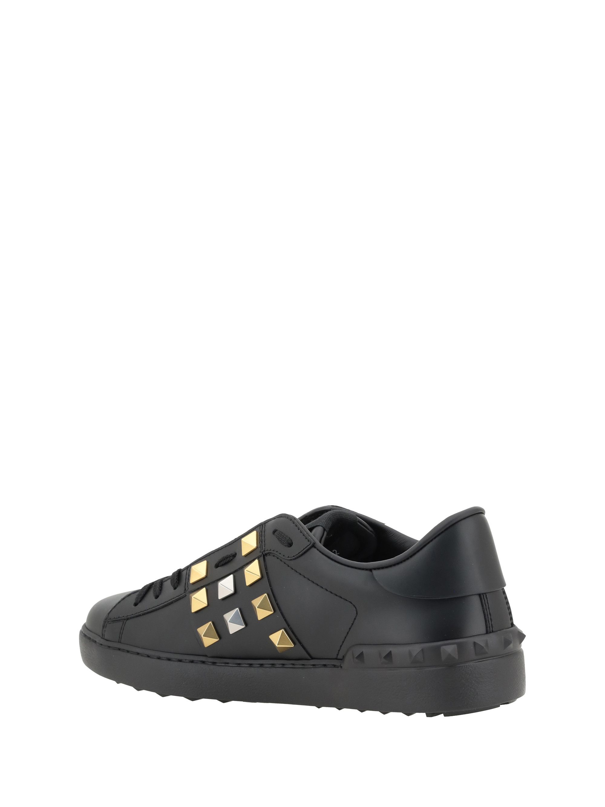 Valentino Garavani's leather Rockstud Sneakers are a bold and sophisticated design, perfect for those who like a mix of luxury and comfort. The lace-free slip-on style offers practicality and a clean design, while the round toe on the front adds a classic touch. The contrasting logo, embroidered on the front tab, completes the look with Valentino's distinctive branding. The iconic Rockstud studs applied on the side panels give a touch of grit and originality, typical of the brand's bold style.