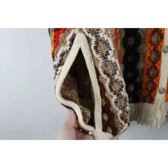 Vtg 60s 70s Mid Century Modern Womens OSFA Rainbow Fringed Sweater Cape CardiganWomens SweaterUSA made. Has fabric pulls and some pillingWomens size One Size For All (no tags, see measurements)Measurements are:23 inches underarm to underarm29 inches top to bottomMulticolorAcrylic Blend Check out my other items in my store!T1265